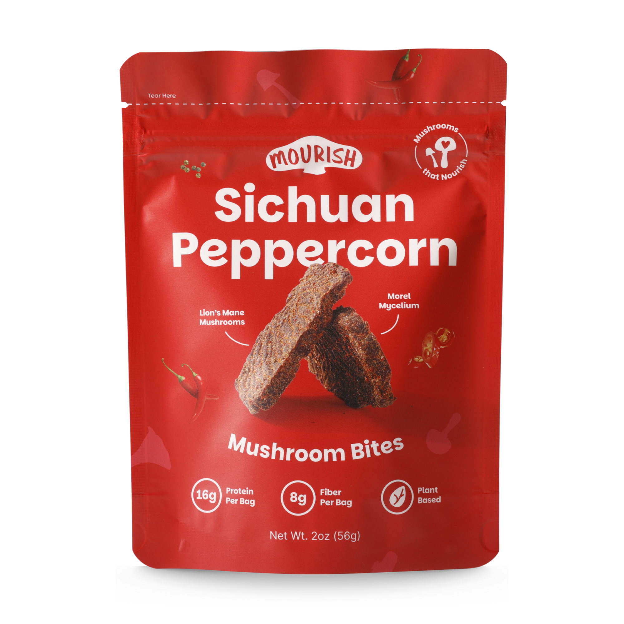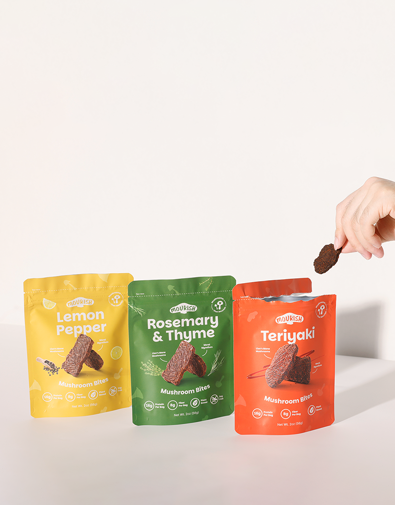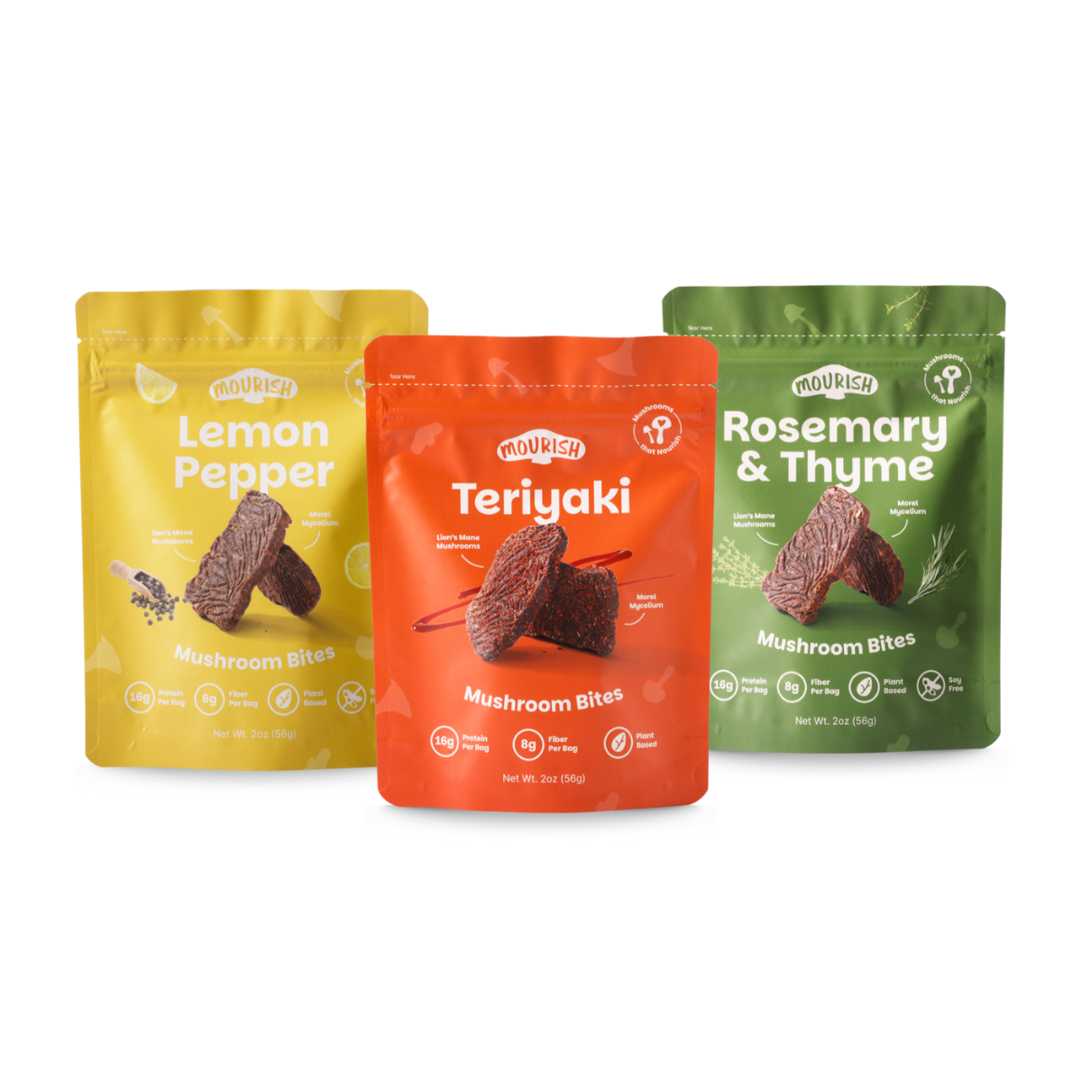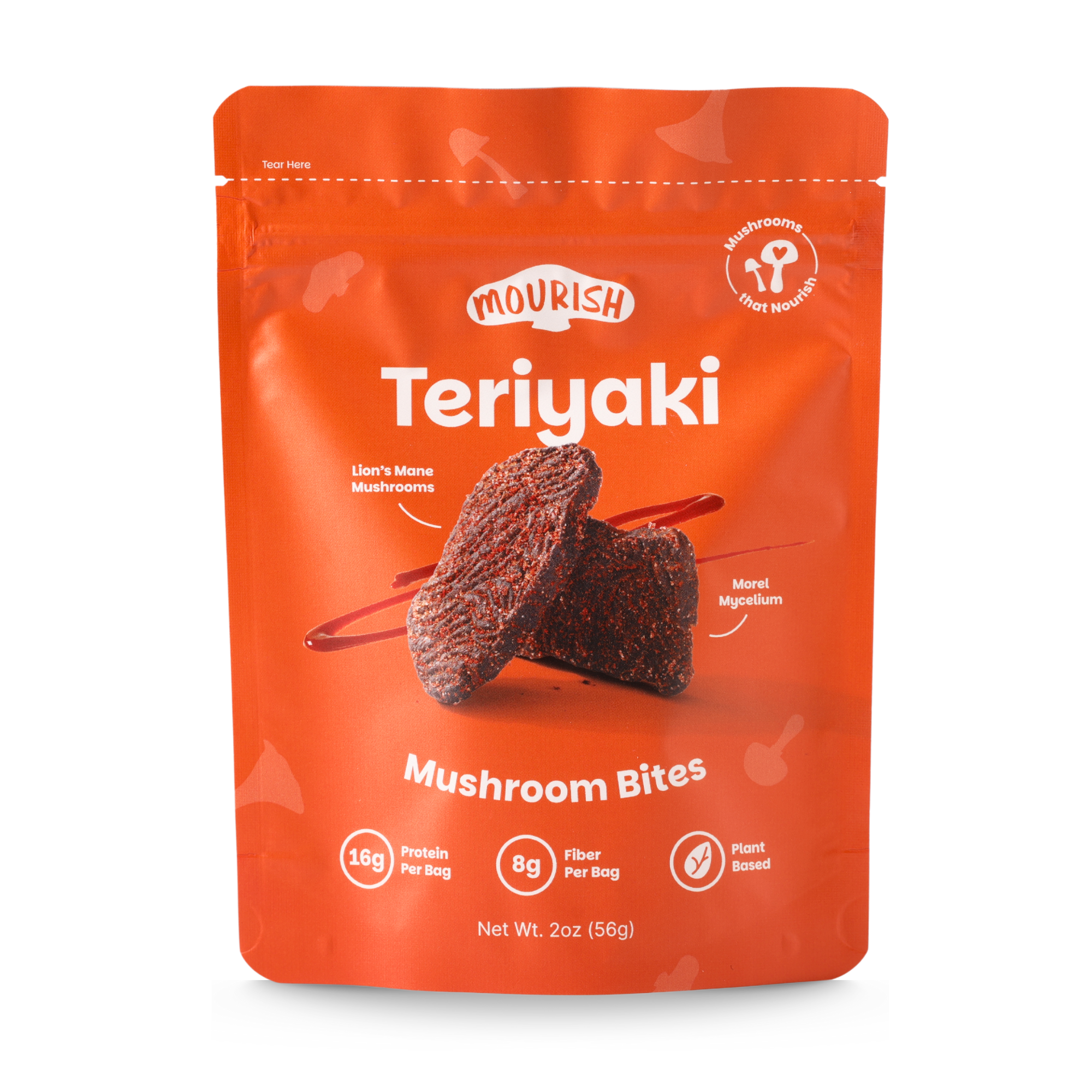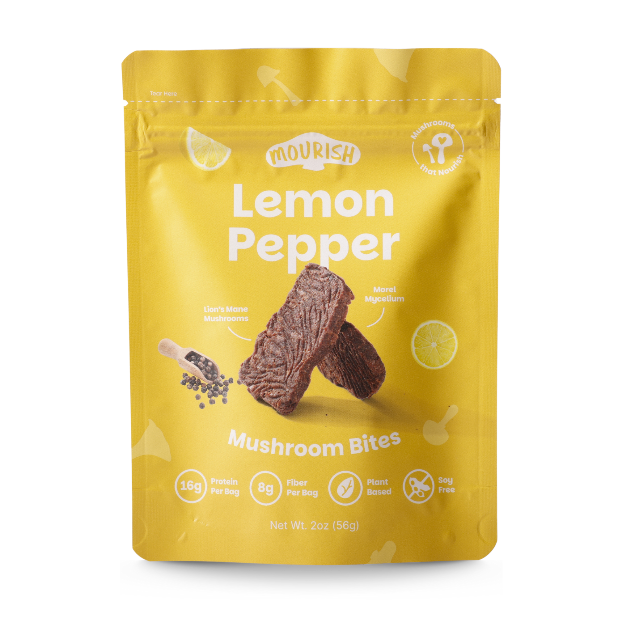 Mourish Bites bring all the depth and chew of our original jerky — now in bite-sized form and more functional than before. Made from Lion's Mane and Morel mycelium, each piece is umami-rich, satisfyingly chewy, and seasoned with real ingredients.